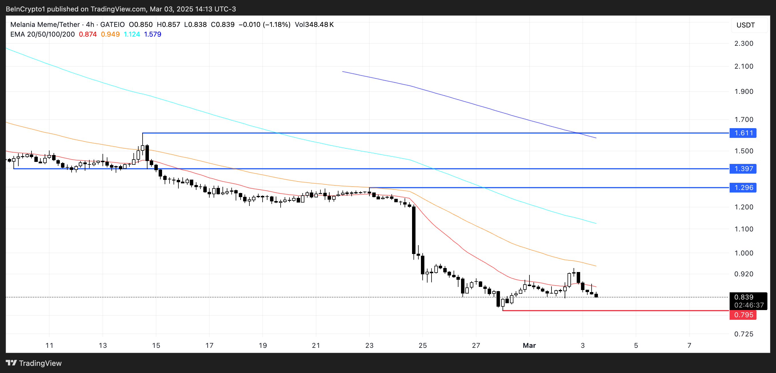 Ang MELANIA ay nagte-trade sa ilalim ng $1 nang halos isang linggo at kasalukuyang malapit sa all-time lows nito. Isang malakas na rebound ang pwedeng magdala nito pabalik sa $1.29 at $1.39, na may potensyal na pagtaas hanggang $1.61 sa unang pagkakataon mula noong Pebrero 6.