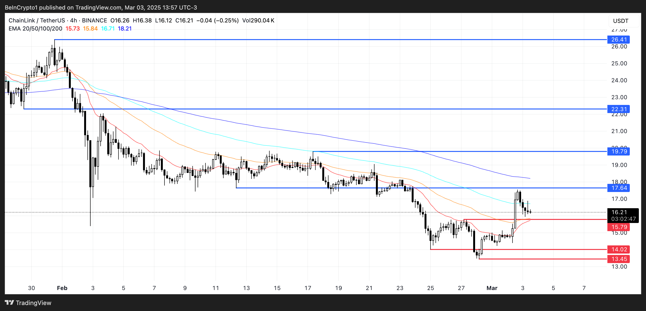 Gayunpaman, ang pagbaba ng market ay maaaring magdulot sa LINK na i-test ang suporta sa $15.7, na may karagdagang pagbaba patungo sa $14 o kahit $13.45.