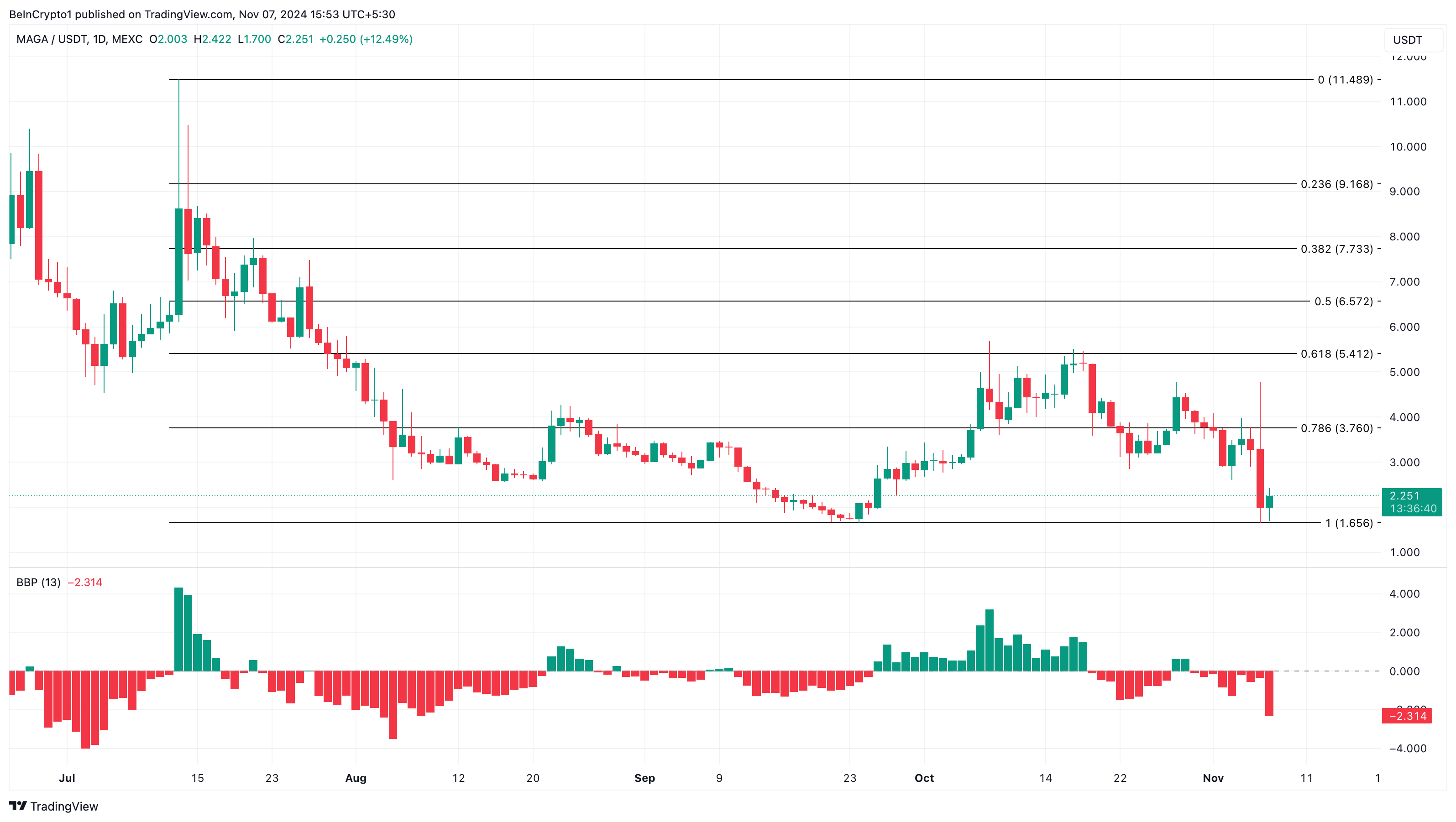 Kaso, contrary sa expectations, bumaba ng 30% ang MAGA sa nakalipas na 24 hours, na nagpapakita na baka hindi aligned ang reaction ng market sa expected na post-election boost.