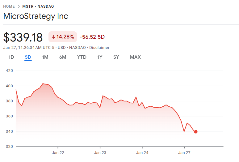 Kahit na may bagong acquisition ngayon, naapektuhan din ang stock ng kumpanya ng mas malawak na sell-off ngayon, na dulot ng DeepSeek AI concerns. Bumaba ng halos 5% ang MSTR ngayon pero nananatiling 14% up ngayong buwan.