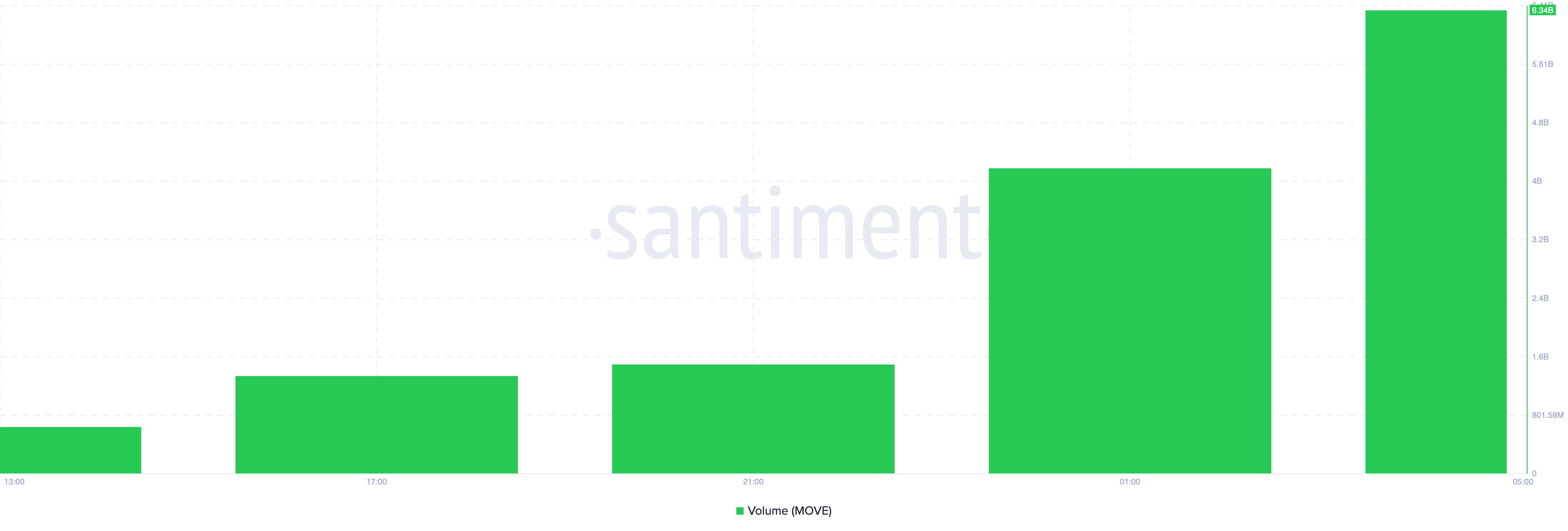 Pero hindi lang presyo ang tumaas sa panahong ito. Ayon sa Santiment, ang trading volume ng Movement ay umabot sa $6.34 billion—isang sampung beses na pagtaas mula nang mag-launch. Ipinapakita nito ang lumalaking interes sa cryptocurrency.
