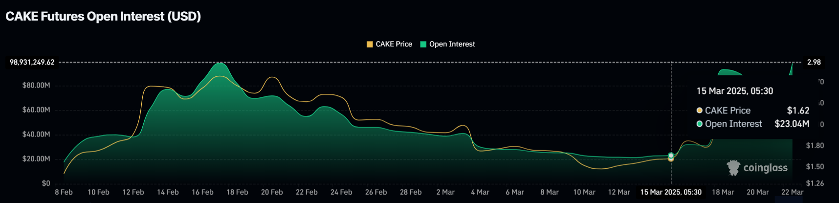 Ang pagtaas ng aktibidad sa Futures contracts ay nagsa-suggest na ang mga trader ay naghahanda para sa karagdagang pagtaas ng presyo, na sumusuporta sa kaso para sa karagdagang kita sa presyo ng CAKE.