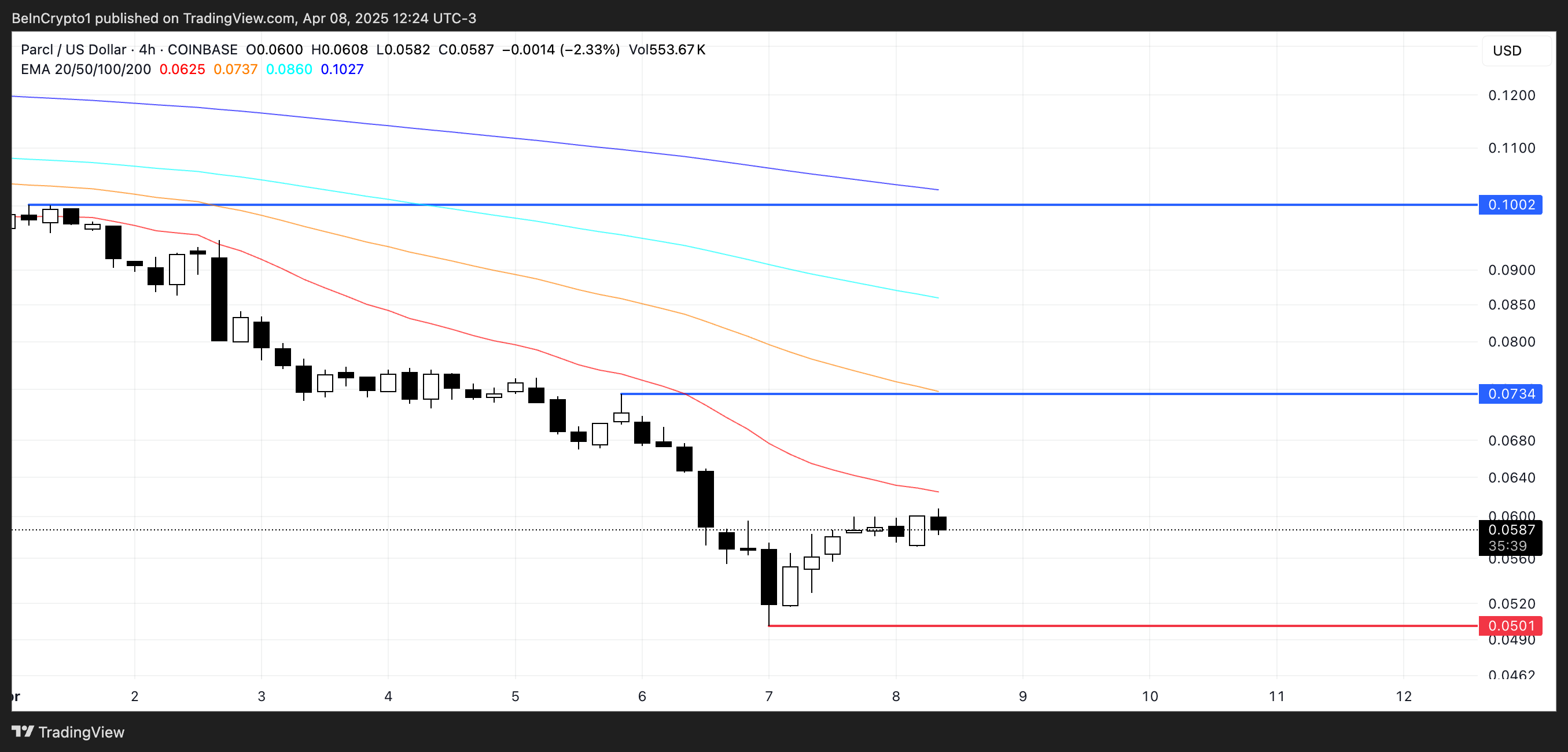 Kung makakabawi ang PRCL mula sa kasalukuyang pagbaba, ang unang key resistance level na dapat bantayan ay $0.073.