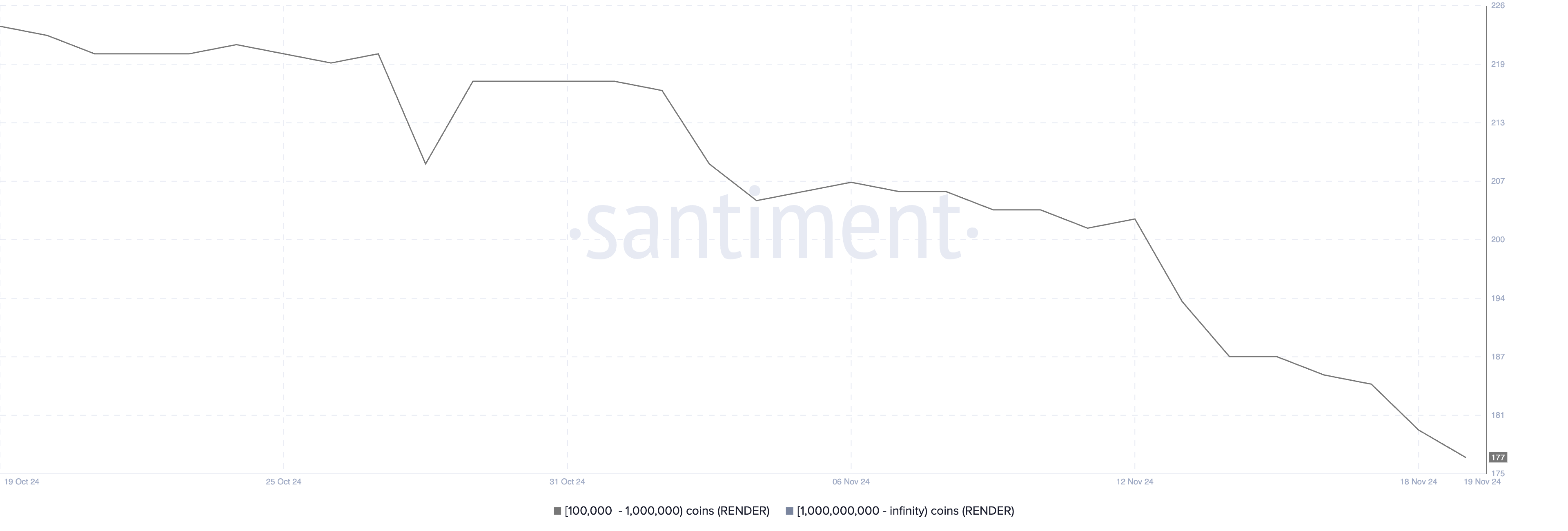 Nagsimula ang bilang na ito sa 218 noong Nobyembre 1 at bumaba sa 177, na nagpapakita ng makabuluhang pagbaba sa malalaking holders kahit na may aktibidad sa market kamakailan.