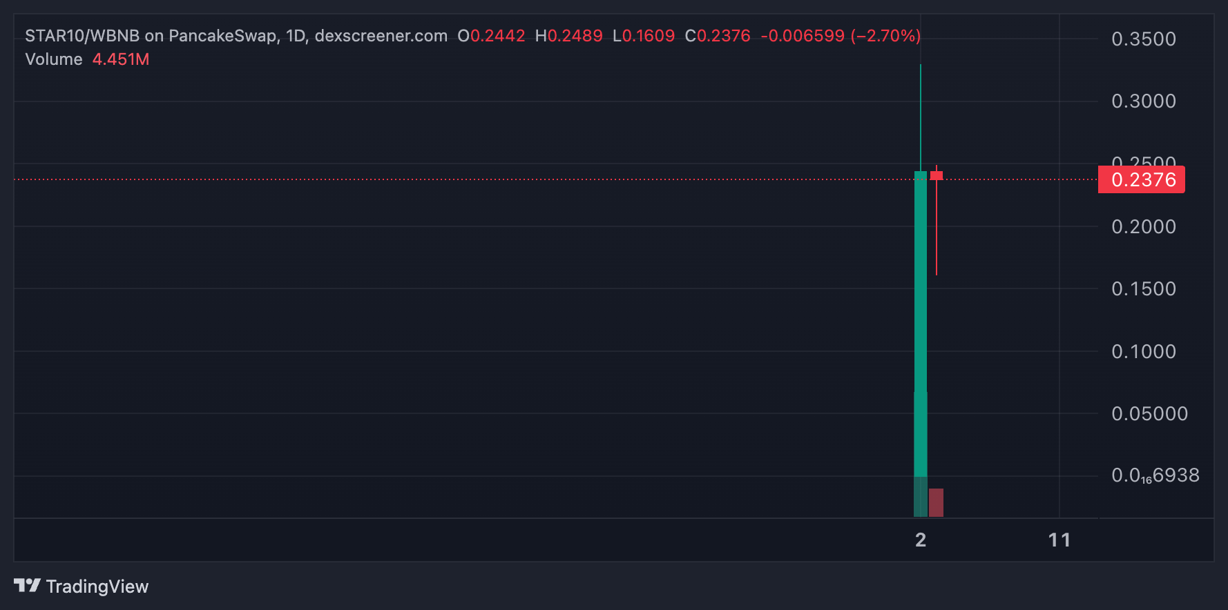 Sa pinakabagong update, ang STAR10 ay may presyo na $0.23, na may $17.9 million sa liquidity. Ang market capitalization nito ay nasa $238.6