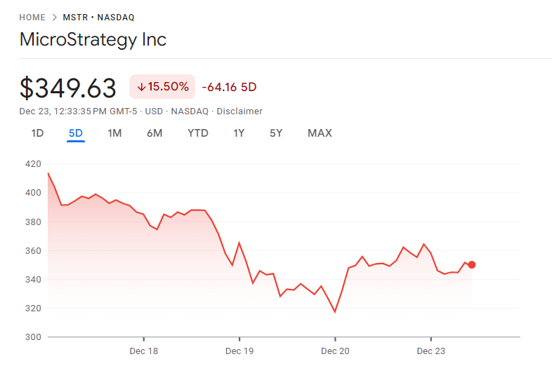 Kaya, ang volatility ng BTC ay pwedeng magkaroon ng malaking epekto sa stock market performance ng MSTR. Sa nakaraang linggo lang, bumaba ng halos 12% ang Bitcoin, at ang stock price ng MSTR ay bumaba rin ng mahigit 15%.