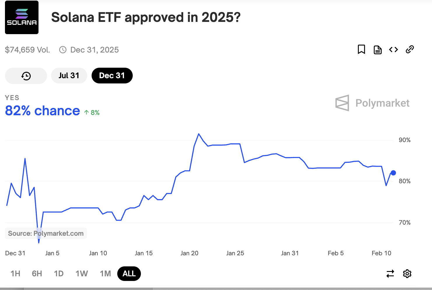 Dagdag pa rito, nagbabago ang odds sa Polymarket, ang nangungunang prediction market. Sa kasalukuyan, naniniwala ang komunidad na may 82% na tsansa na ma-approve ang Solana fund ngayong taon.