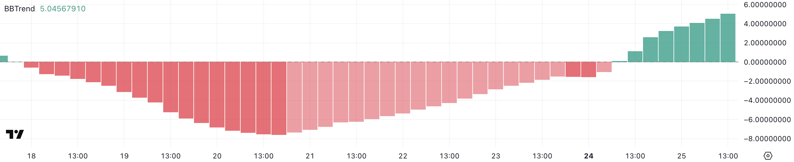 Pero, habang ang positibong pag-turn ng BBTrend ay nakaka-encourage, ito ay nasa medyo mababang levels pa rin kumpara sa mga nakaraang rally. Kung patuloy na tataas ang BBTrend, mako-confirm nito ang lumalakas na bullish sentiment.