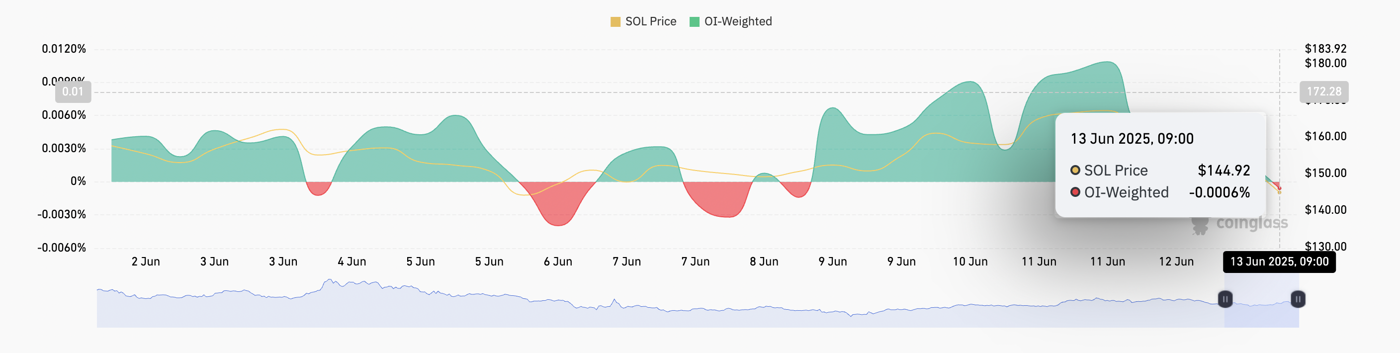 Dagdag pa rito, ang futures funding rate ng SOL ay naging negative sa unang pagkakataon sa mahigit isang linggo, na nagpapatunay ng muling pagtaas ng bearish pressure. Ayon sa Coinglass, ito ay kasalukuyang nasa -0.0006%.