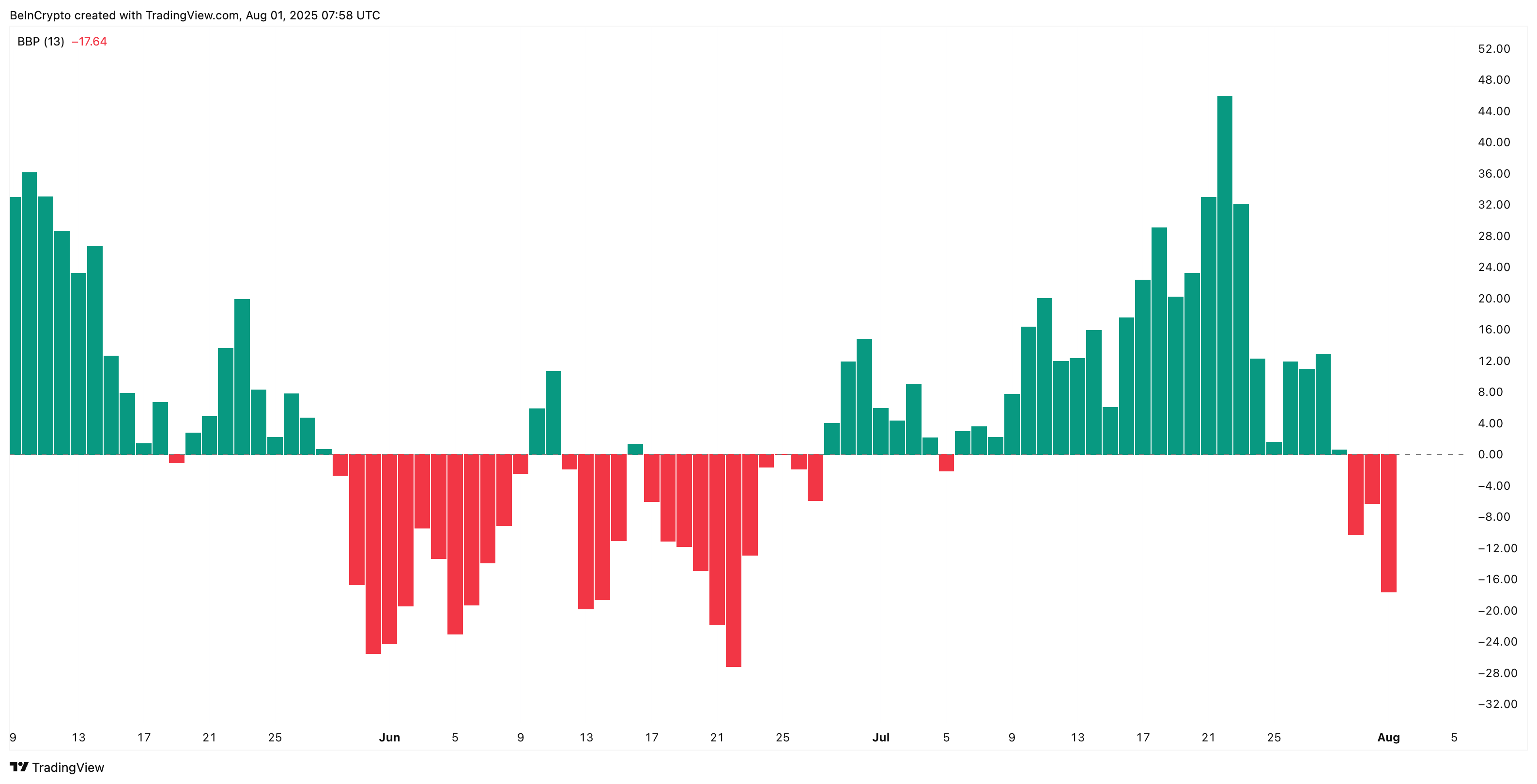 Kasabay nito, ang Bull-Bear Power index ay negatibo na sa tatlong sunod-sunod na session, ang pinakamahabang red streak mula noong June. Ipinapakita nito na hawak ng mga seller ang kontrol, na itinutulak pababa ang price action kahit may mga paminsang pag-recover.