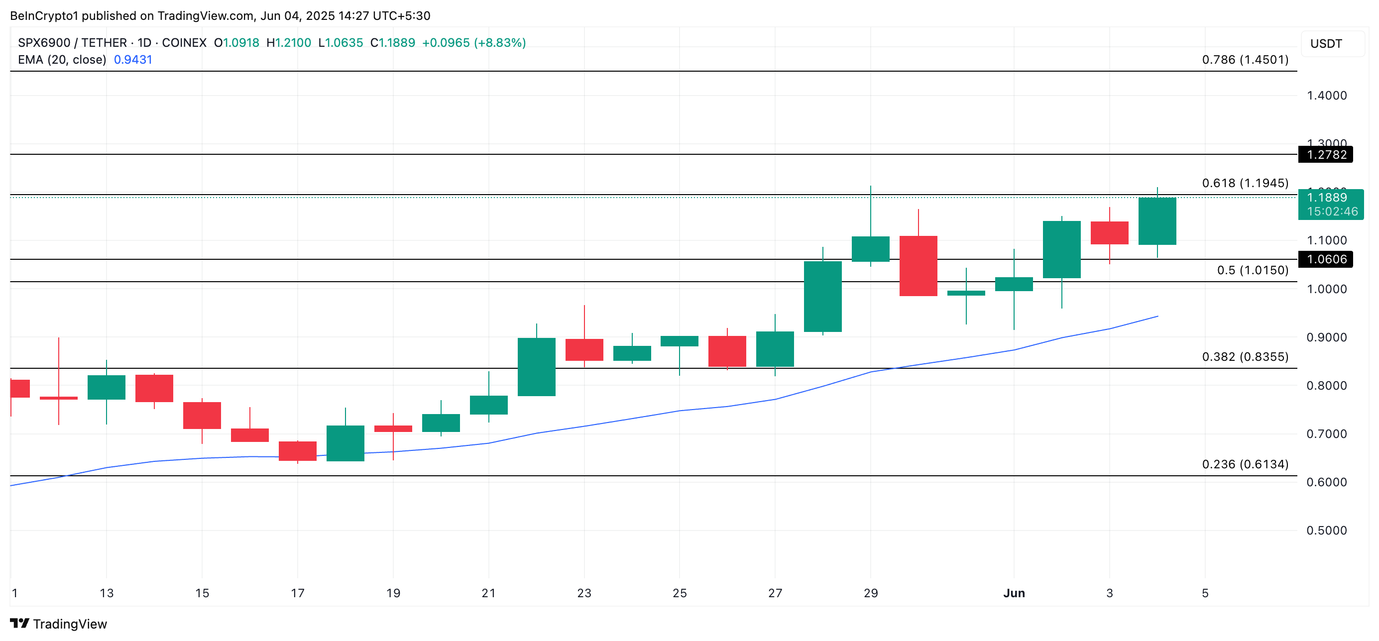 Kung magpapatuloy ito, maaaring lampasan ng SPX ang $1.19 resistance at umakyat patungo sa $1.27.