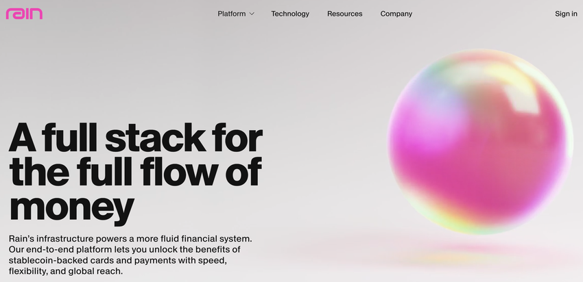 Nagbibigay ang Rain ng infrastructure na nagpapahintulot sa mga fintech, bangko, at marketplaces na mag-issue ng stablecoin-backed cards, wallets, at payment programs. Lumago ng sampung beses ang transaction volume mula Enero 2025, na may milyun-milyong transaksyon na na-proseso sa mahigit 150 bansa.