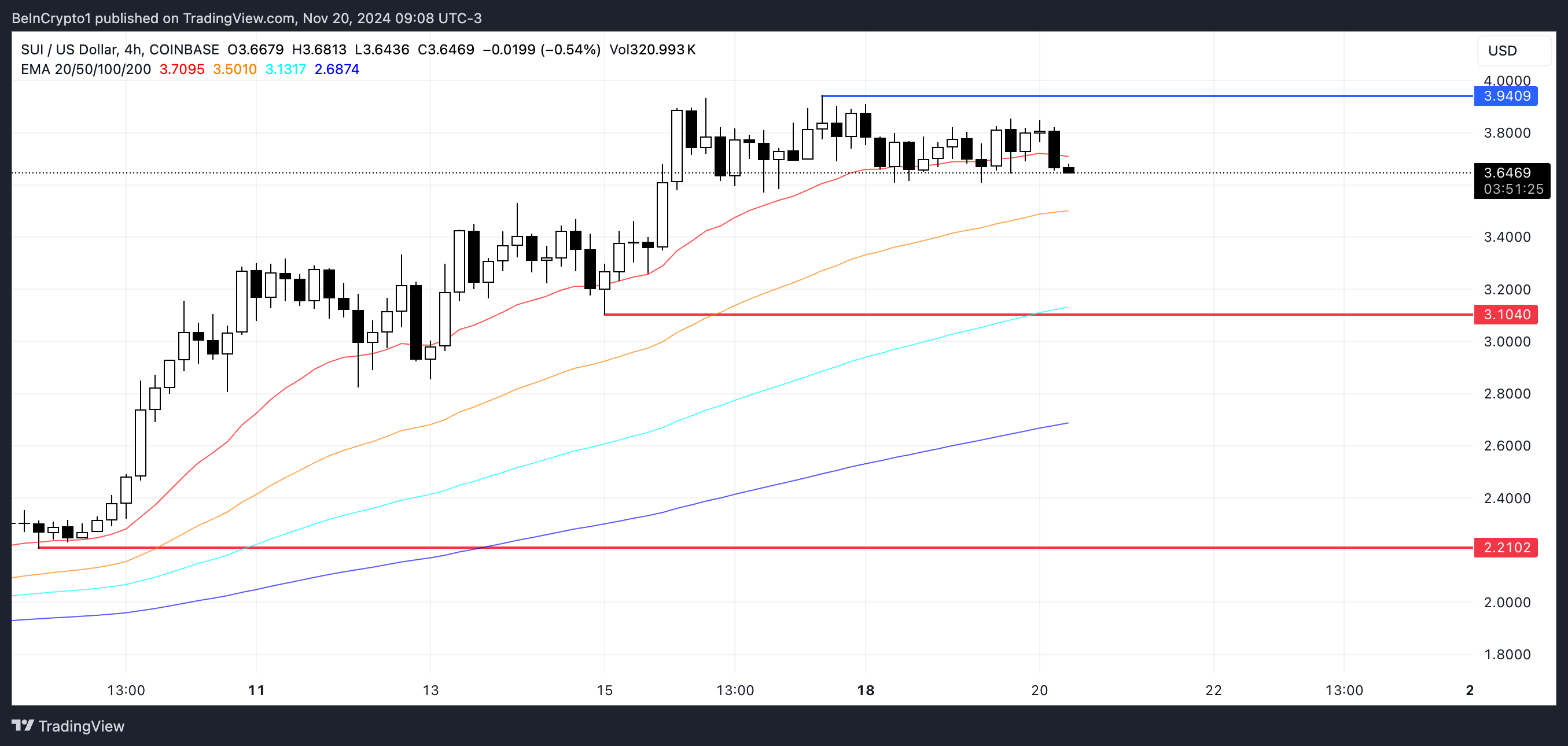 Kung ang kasalukuyang uptrend ng SUI ay muling lumakas, malamang na susubukan nito ang resistance sa $3.94, na siyang dating all-time high nito. Ang pagbasag sa antas na ito ay maaaring magbukas ng daan para sa karagdagang pagtaas, na may susunod na pangunahing threshold sa $4.