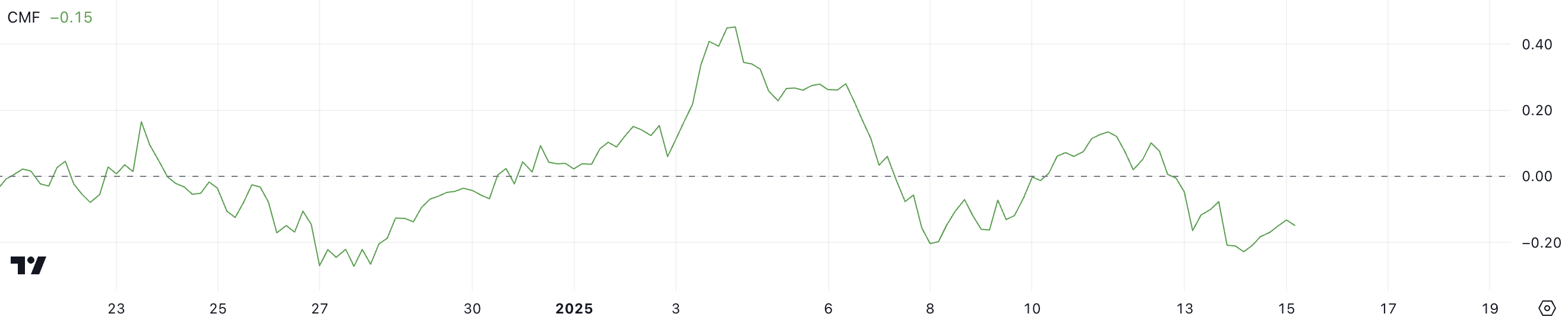 Ang pagbagsak na ito sa CMF ay umaayon sa bearish outlook, na nagpapahiwatig ng nabawasang kumpiyansa ng mga investor at posibilidad ng patuloy na kahinaan ng presyo.