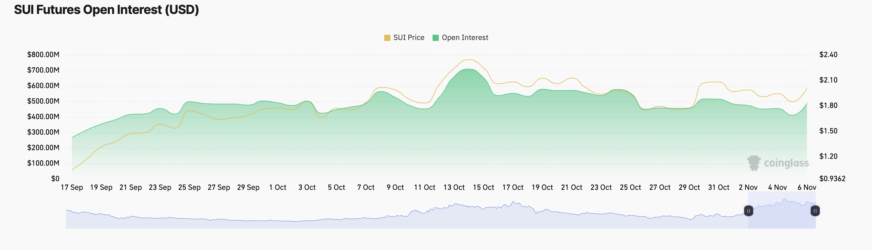 Ang open interest ay nagpapakita ng bilang ng mga bukas na kontrata — tulad ng futures o options — na hindi pa settled o closed. Kapag tumataas ang open interest kasabay ng presyo, indikasyon ito ng mas maraming traders na pumapasok sa merkado na nagpapatibay ng support sa pagtaas ng SUI.