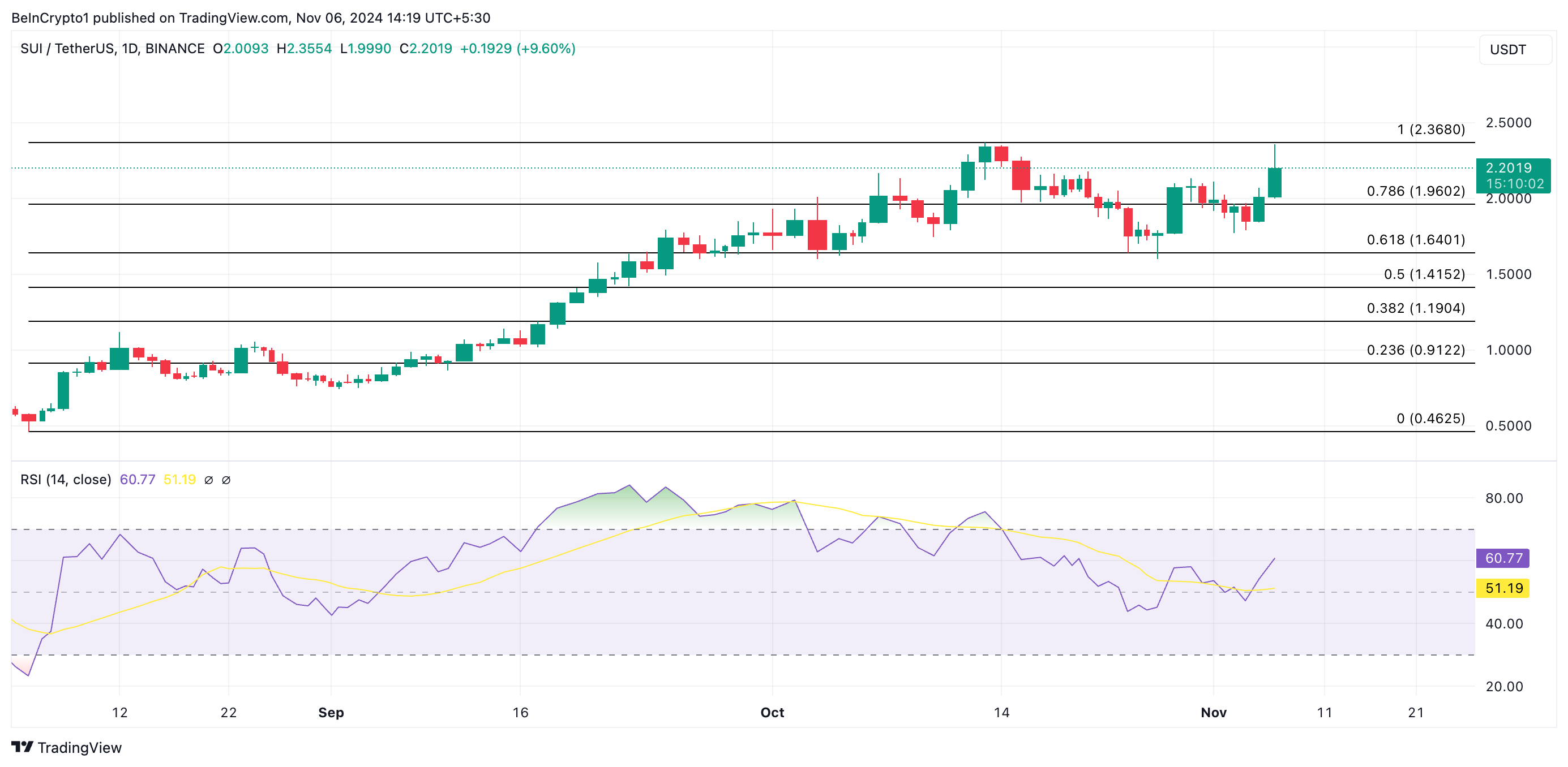 Ayon sa analysis ng BeInCrypto sa technical setup ng token, mukhang nakaposisyon ang SUI para ipagpatuloy pa ang double-digit gains nito. Narito kung paano.