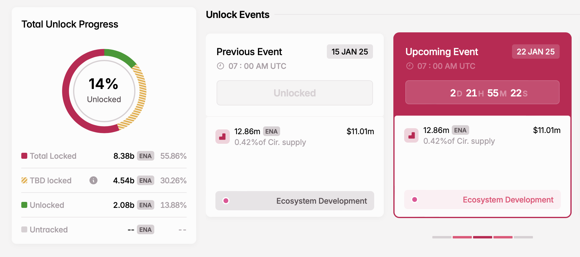 - Number of tokens unlocked: 12.86 million ENA