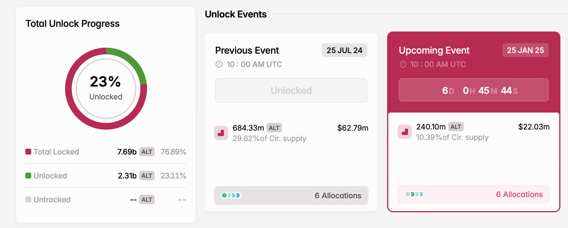 - Number of tokens unlocked: 204.10 million ALT