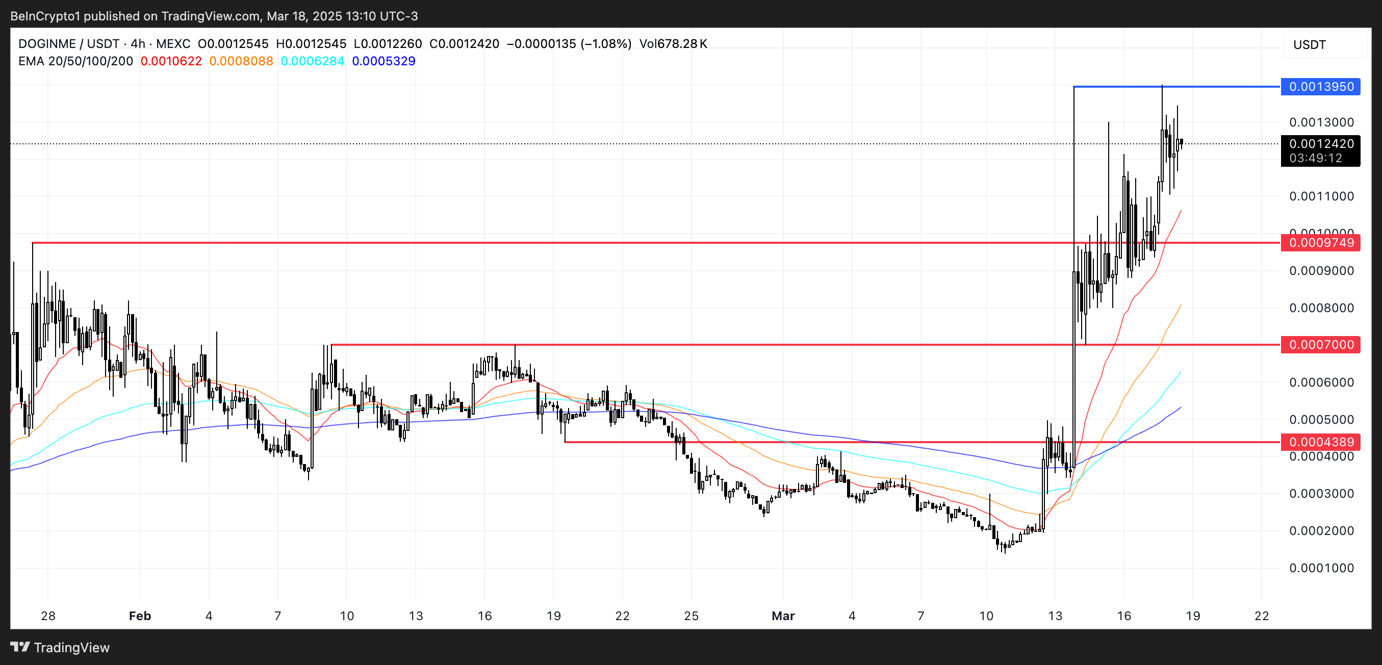 Kung magpapatuloy ang uptrend, puwedeng lumampas ang DOGINME sa $0.00139, na may puwang na umabot sa $0.0015 at $0.0020. Pero kung humina ang momentum, puwedeng bumaba ang presyo sa $0.00097, $0.0007, o kahit $0.00043.