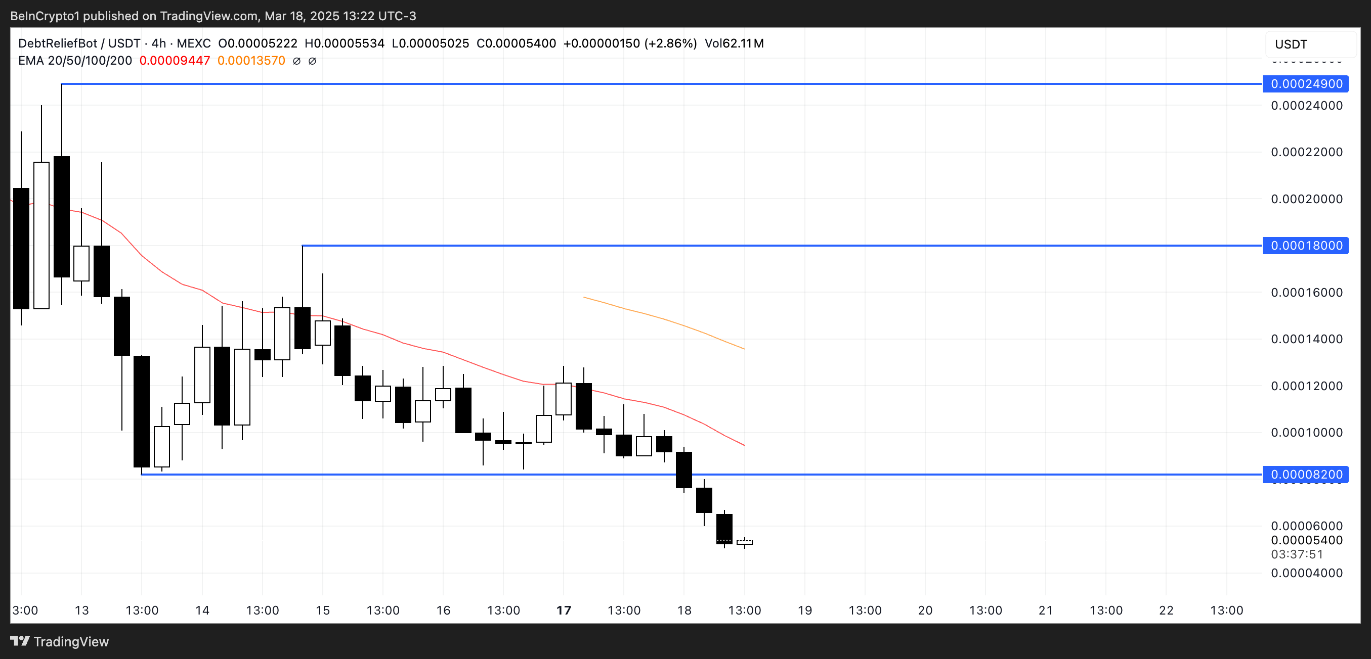 Kung mag-reverse ang trend, puwedeng umakyat ang DRB para i-test ang resistance levels sa $0.000082 at $0.00018. Isang malakas na breakout ang puwedeng magtulak ng presyo pataas sa $0.000249, na magmamarka ng malaking recovery mula sa kasalukuyang lows nito.