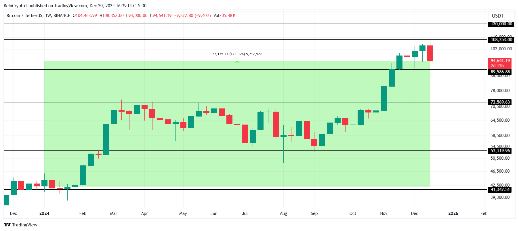 Nagkaroon ng magandang takbo ang Bitcoin ngayong taon dahil nag-form ito ng maraming bagong all-time highs at gumawa ng kasaysayan matapos lampasan ang $100,000 mark. Sa paggawa nito, nagrehistro ang BTC ng 123% na pagtaas sa 2024.