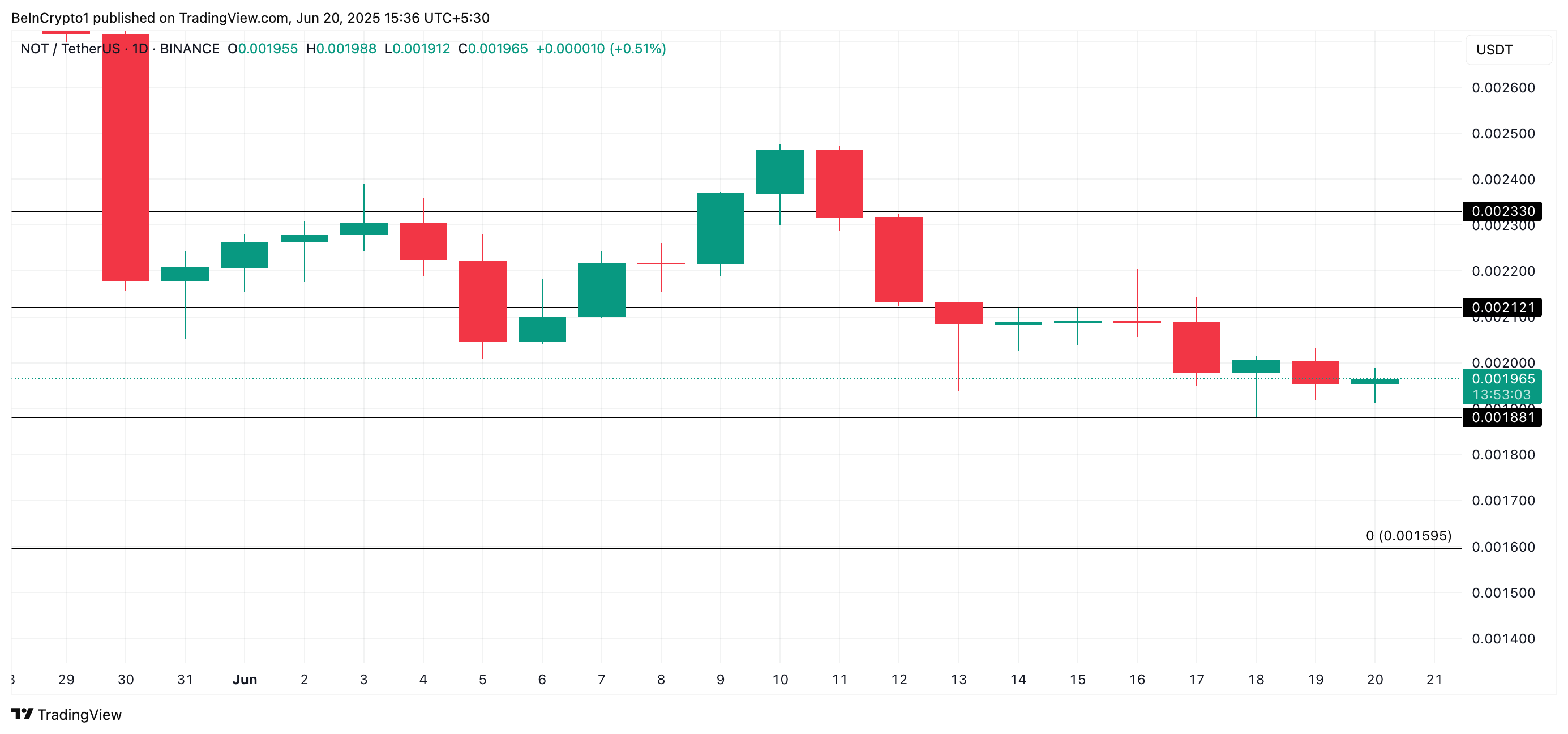 Isa sa mga pinaka-searched na asset sa Nigeria ngayon ay ang Telegram-linked altcoin na NOT. Sa kasalukuyan, ang token ay nasa $0.0019, bumaba ng 1% sa nakaraang araw.