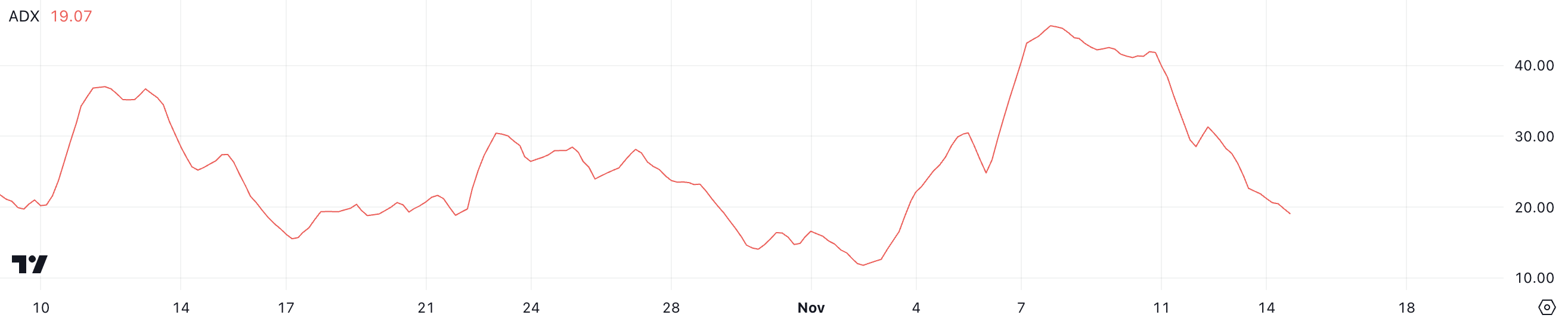 Usually, ang pagbasa ng ADX na higit sa 25 ay nagmumungkahi ng malakas na trend, habang ang mga halaga na mas mababa sa 20 ay nagpapahiwatig ng kawalan ng trend o mahinang momentum. Ang malaking pagbaba mula sa mahigit 40 hanggang 19 ay nagpapahiwatig na malaki ang paghupa ng lakas sa likod ng kamakailang trend ng UNI.
