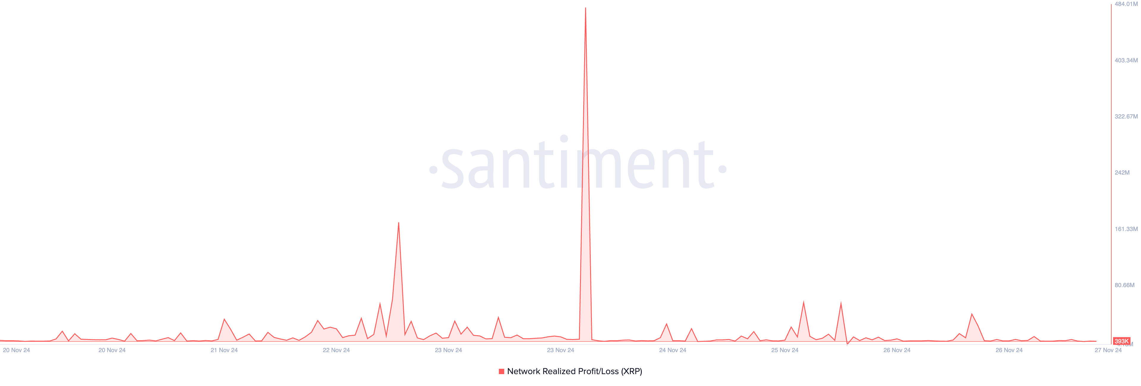 Ang assessment ng BeInCrypto sa on-chain performance ng XRP ay nagpakita ng pagtaas sa profit-taking activity ng mga holders nito, na makikita sa pagtaas ng realized profit. Ayon sa data ng Santiment, sa nakaraang pitong araw, umabot sa $1.84 billion ang realized profits ng XRP, pinakamataas mula noong April 2021.