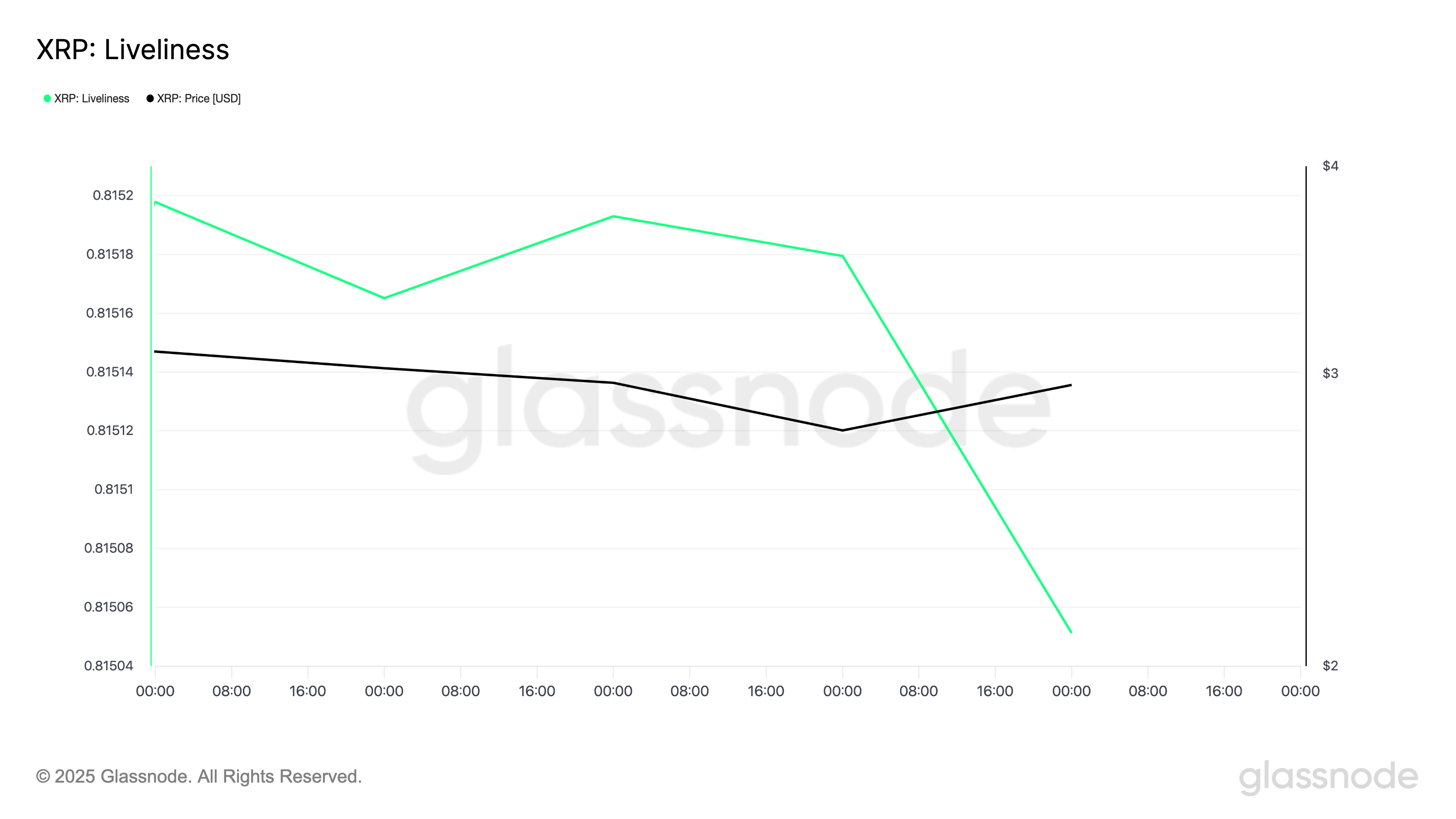 Isa pang kapansin-pansing trend ay ang patuloy na pagbaba ng liveliness ng XRP simula noong August. Ayon sa Glassnode, nagtapos ang metric noong August 3 sa 0.8150, bumaba mula sa 0.8152 na naitala noong August 1.