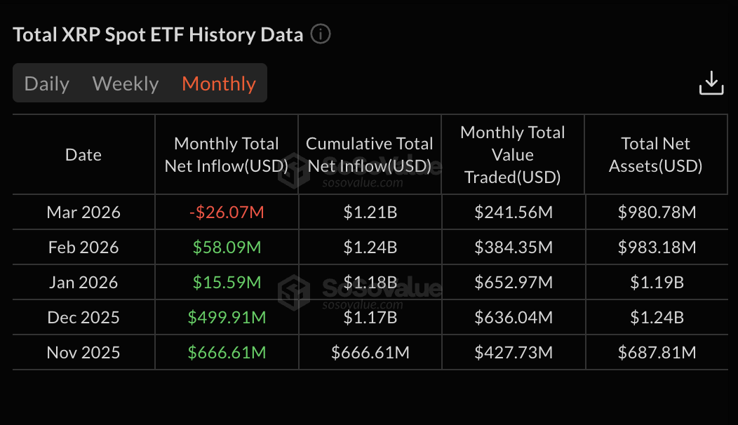 Makikita sa mga filings na ito ang positions nila noong December 31, 2025, na siyang latest na cut-off ng reporting. Pero, maliit pa rin ang share ng mga institusyon sa kabuuan ng XRP ETF capital. Naging topic na naman ito noong March, habang hirap pa ring makabawi ang presyo ng XRP.