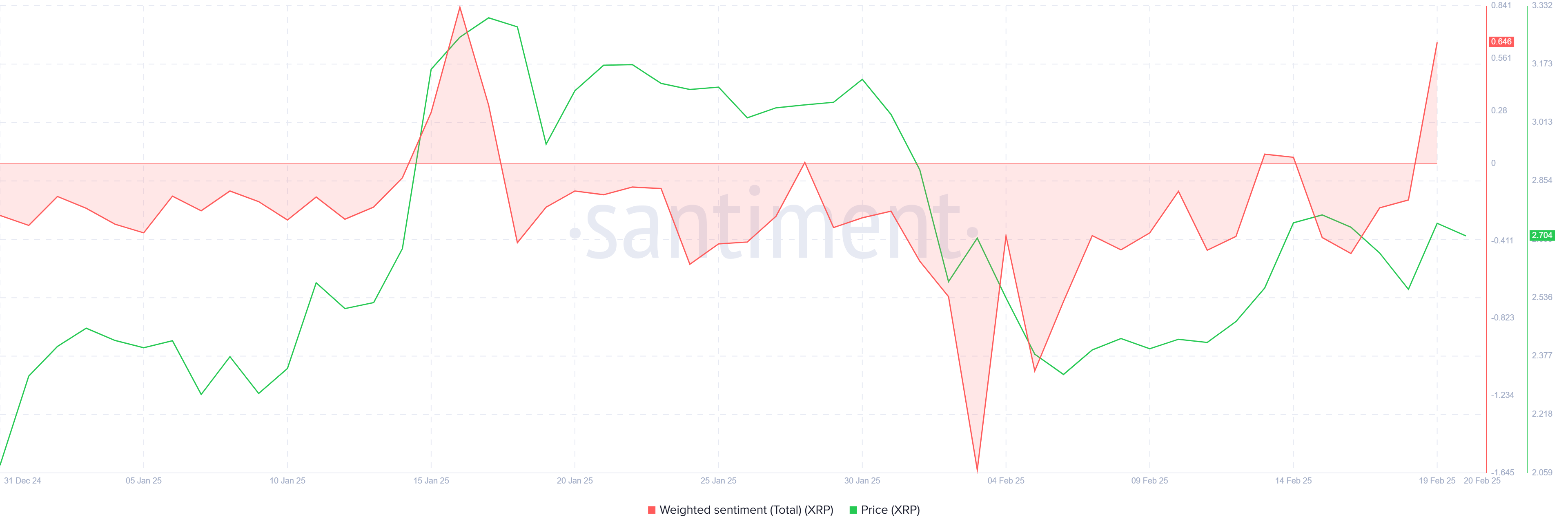Ang kabuuang momentum ng XRP ay nagbabago nang positibo, na may kapansin-pansing pagtaas sa weighted sentiment nito sa unang pagkakataon sa loob ng isang buwan. Sa mga nakaraang linggo, ang sentiment ay karamihan ay bearish habang nagpakita ng pag-iingat ang mga investors. Gayunpaman, ang pagbabagong ito sa positibong sentiment ay nagpapakita ng lumalaking kumpiyansa sa pag-recover ng presyo ng XRP at nagsa-suggest ng pagtaas sa buying activity.