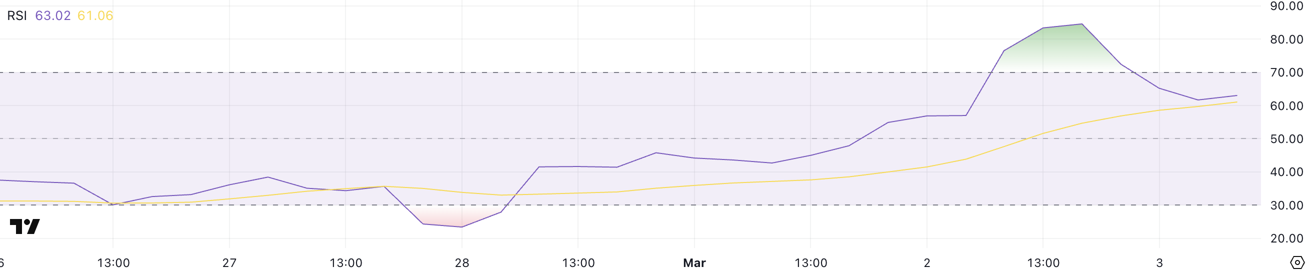 Ngayon, nasa 63 na ang RSI ng XRP, bumaba mula sa overbought zone nito, na nagpapakita ng kamakailang retracement sa presyo. Habang ang reading na higit sa 60 ay nagsa-suggest pa rin ng bullish momentum, ang pagbaba mula sa extreme levels ay maaaring magpahiwatig na humihina ang buying pressure.
