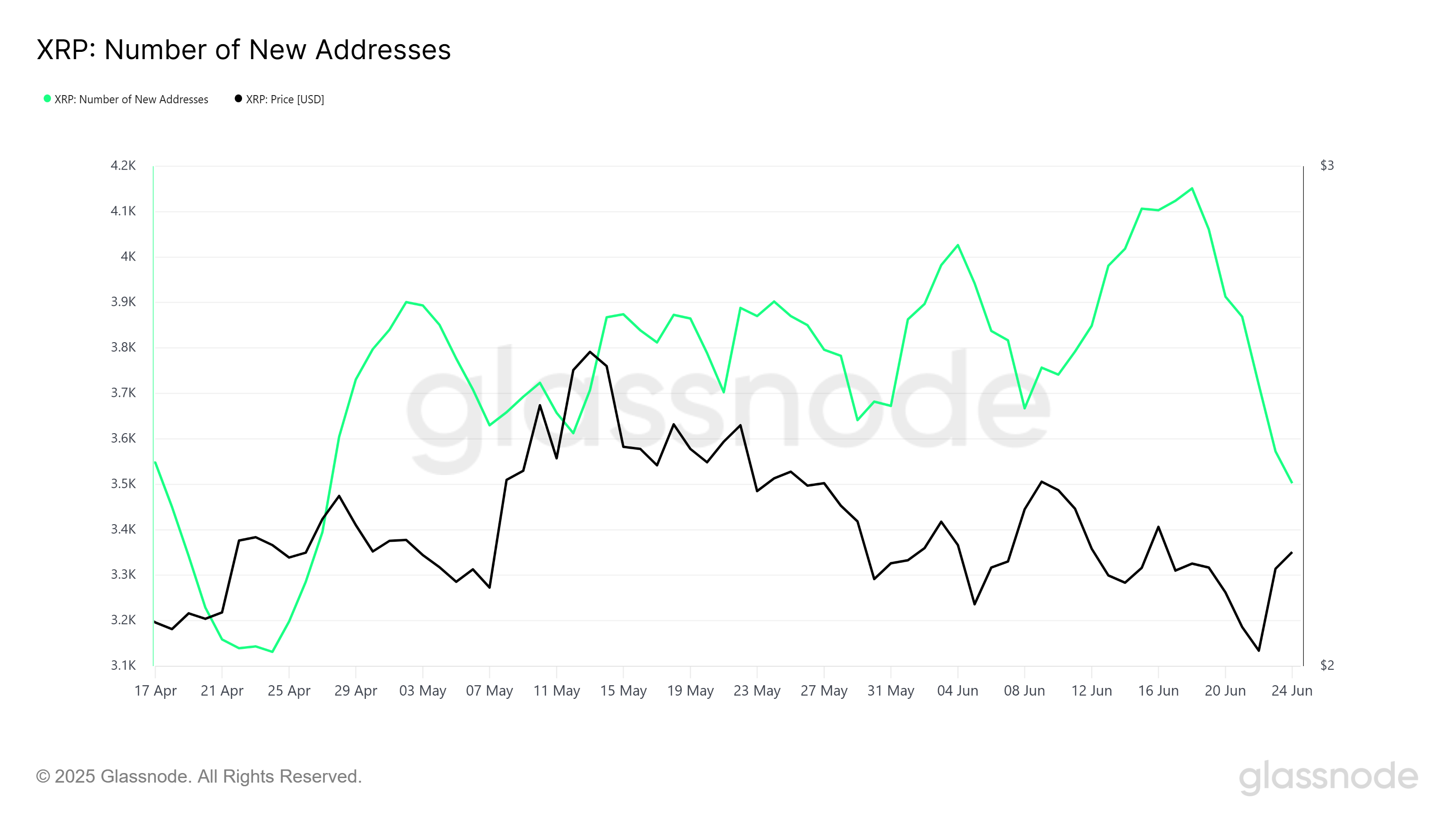 Ang overall market sentiment para sa XRP ay halo-halo, lalo na pagdating sa mga bagong address. Noong nakaraang linggo, nakaranas ng matinding pagbaba ang mga bagong XRP address, bumagsak ito sa two-month low. Ang trend na ito ay nagpapahiwatig na nawawalan ng traction ang XRP sa mga bagong users, marahil dahil sa kakulangan ng tuloy-tuloy na paglago at hindi tiyak na kondisyon ng market.